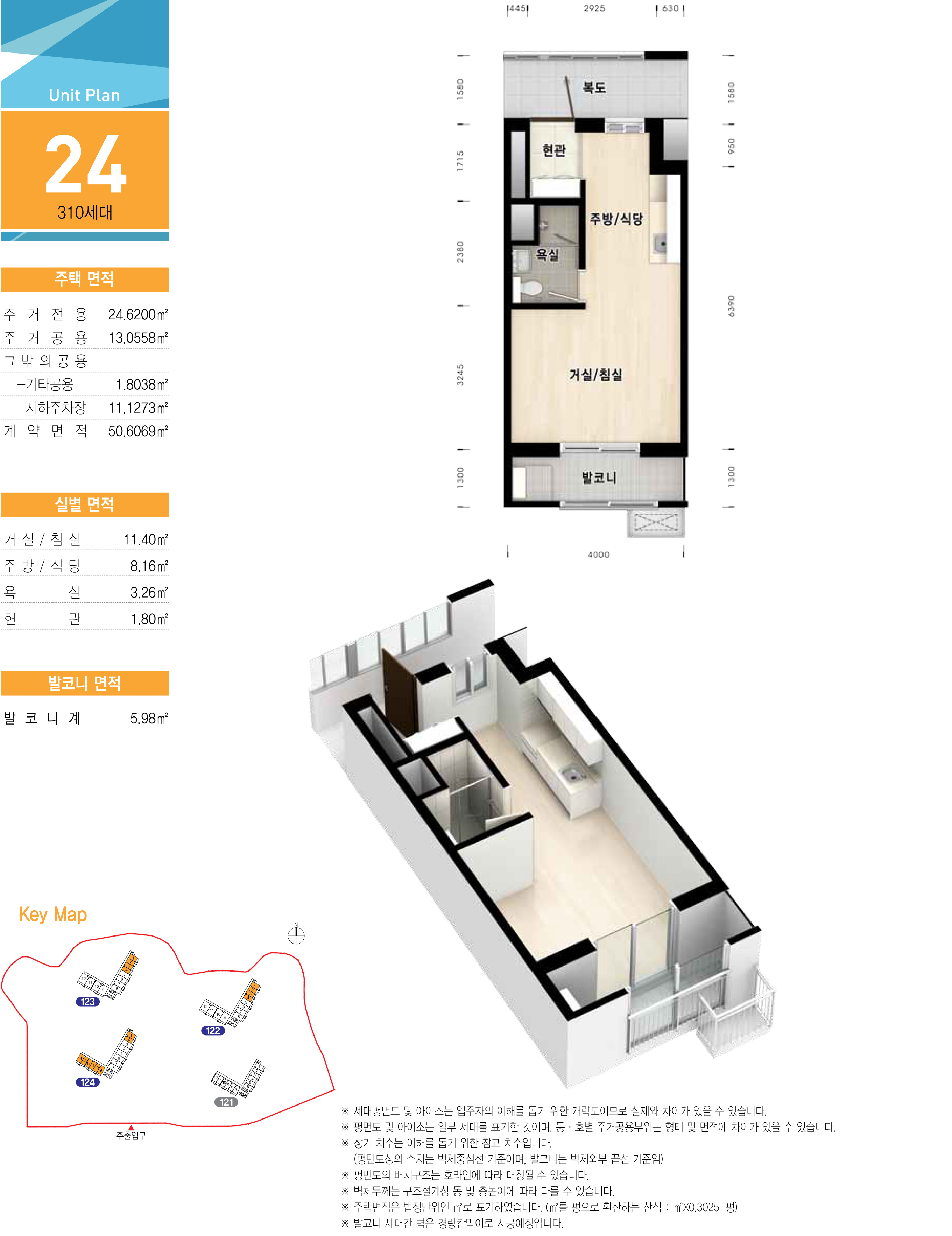 화성동탄2 A6블록 국민임대주택 동탄2 LH 1단지 아파트 전용면적 24㎡의 24형은 서비스 면적으로 제공되는 주거공용 면적을 포함하여 舊, 평형으로 환산하면 약 11.397평으로, 주방/식당과 거실/침실이 일체형으로 되어 있고, 욕실과 실외기 설치 공간이 외부에 있는 발코니 등으로 구성되어 있는 1베이 원룸형 구조 입니다.