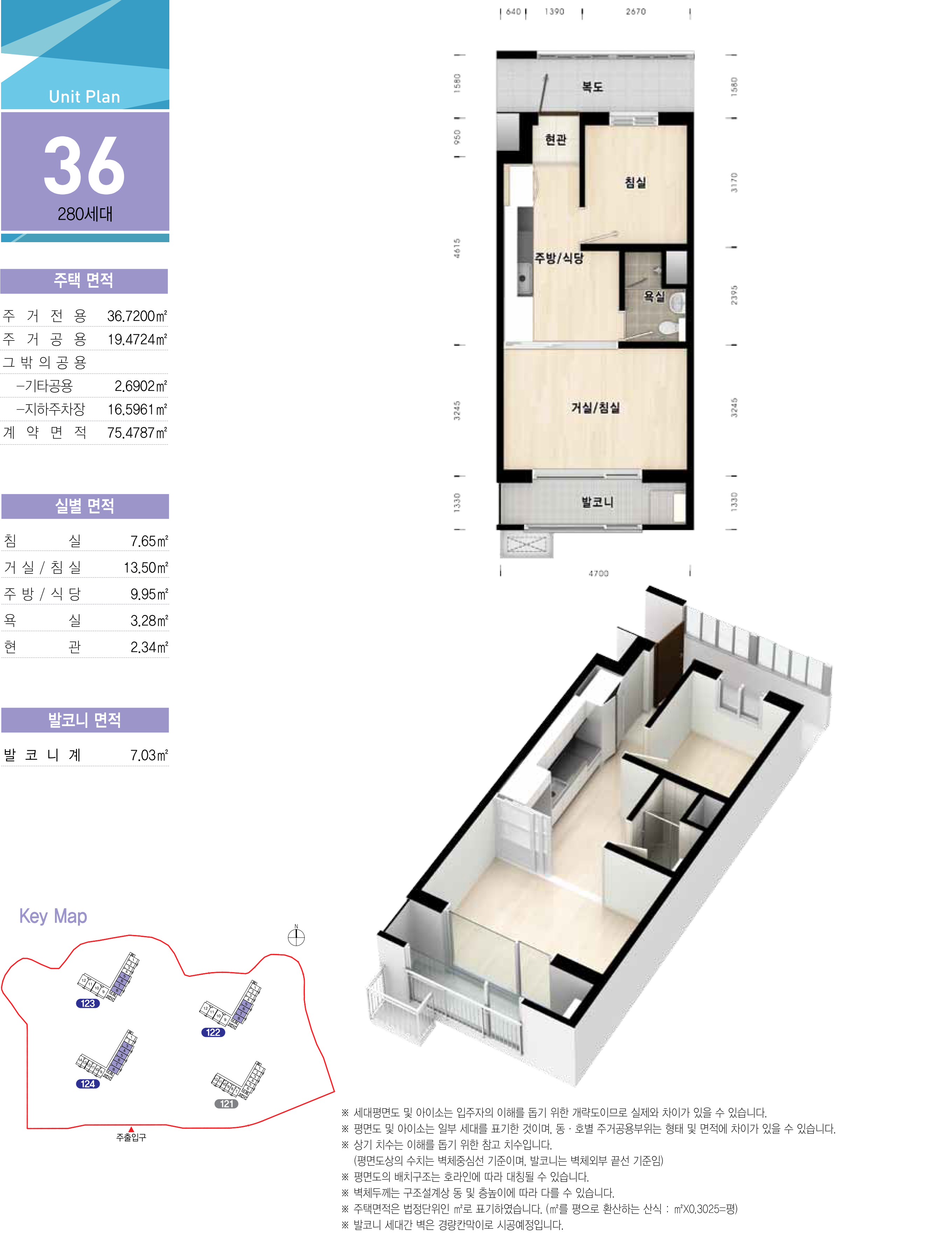 화성동탄2 A6블록 국민임대주택 동탄2 LH 1단지 아파트 전용면적 36㎡의 36형은 서비스 면적으로 제공되는 주거공용 면적을 포함하여 舊, 평형으로 환산하면 약 16.998평으로, 침실 1개 외에 주방/식당과 거실/침실이 미닫이문으로 분리되어 있고, 욕실과 실외기 설치 공간이 외부에 있는 발코니 등으로 구성되어 있는 1베이 구조 입니다.