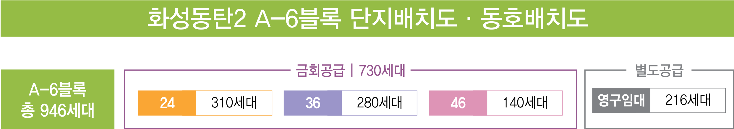 한국토지주택공사에서 공급하는 화성동탄2 A6블록 동탄2 LH 1단지 아파트는 경기도 화성시 동탄대로24가길 27 [㉾18464] (舊, 지번주소: 경기도 화성시 영천동 651-608번지)에 위치해 있는 지역난방 방식의 복도식 아파트 단지로, 국민임대주택 730세대와 영구임대주택 216세대 등 총 946세대가 2018년 02월에 입주가 시작되었습니다. LH공사에서 공급하는 화성동탄2 A6블록 동탄2 LH 1단지 아파트 중 국민임대주택은 15층 ~ 20층 규모의 121동 ~ 124동 까지 4개동 중 전용면적 24㎡의 24형 310세대와 36㎡의 36형 280세대, 46㎡의 46형 140세대로 구성되어 있습니다.