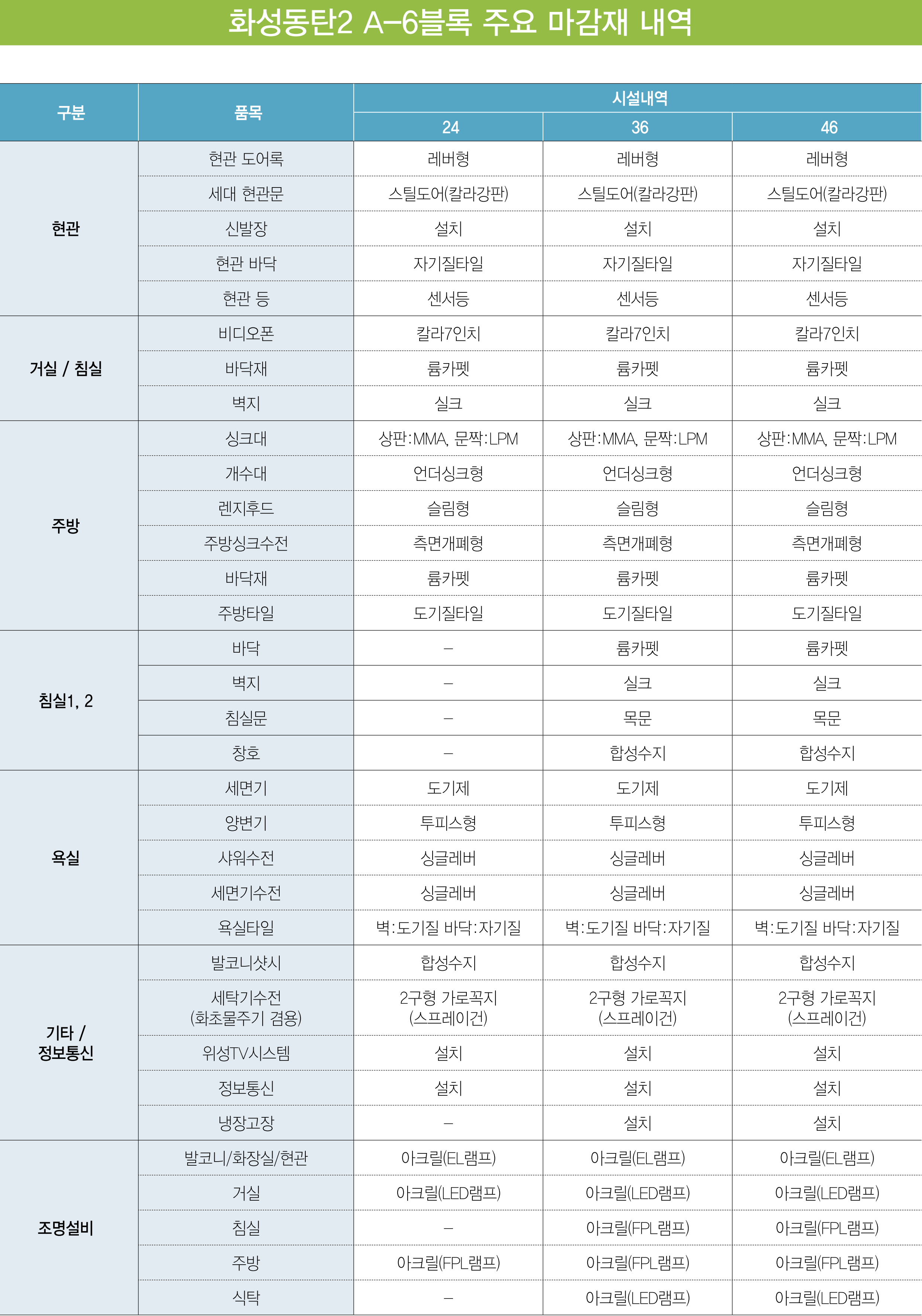 화성동탄2 A6블록 국민임대주택 동탄2 LH 1단지 아파트 전용면적 46㎡의 46형은 서비스 면적으로 제공되는 주거공용 면적을 포함하여 舊, 평형으로 환산하면 약 21.632평으로, 침실 2개와 주방/식당과 거실, 욕실과 실외기 설치 공간이 외부에 있는 발코니 등으로 구성되어 있는 2베이 구조 입니다.