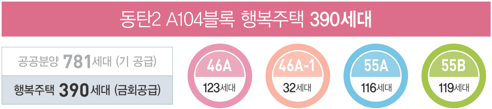 LH공사에서 공급하는 화성동탄2 A104블록 신혼희망타운 동탄2 디루체 아파트는 경기도 화성시 동탄신리천로2길 65 [㉾18495] (舊, 지번주소: 경기도 화성시 신동 산185-1번지)에 위치해 있는 지역난방 방식의 아파트 단지로, 행복주택 390세대와 공공분양주택 781세대 등 총 1,171세대가 2022년 09월에 입주가 시작되었습니다. 한국토지주택공사에서 신혼희망타운으로 공급하는 화성동탄2 A104블록 행복주택 동탄2 디루체 아파트는 13층 ~ 20층 규모의 2311동 ~ 2323동 까지 13개동 전용면적 46㎡의 46A형 123세대와 주거약자용 주택인 46A1형 32세대, 55㎡의 55A형 116세대와 55B형 119세대로 구성되어 있습니다.